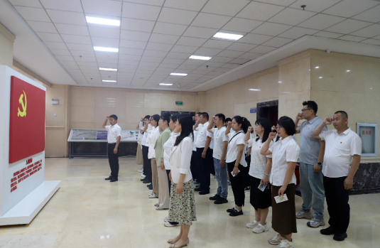 (参观结束后,全体党员在党旗前集体宣誓重温入党誓词。)
